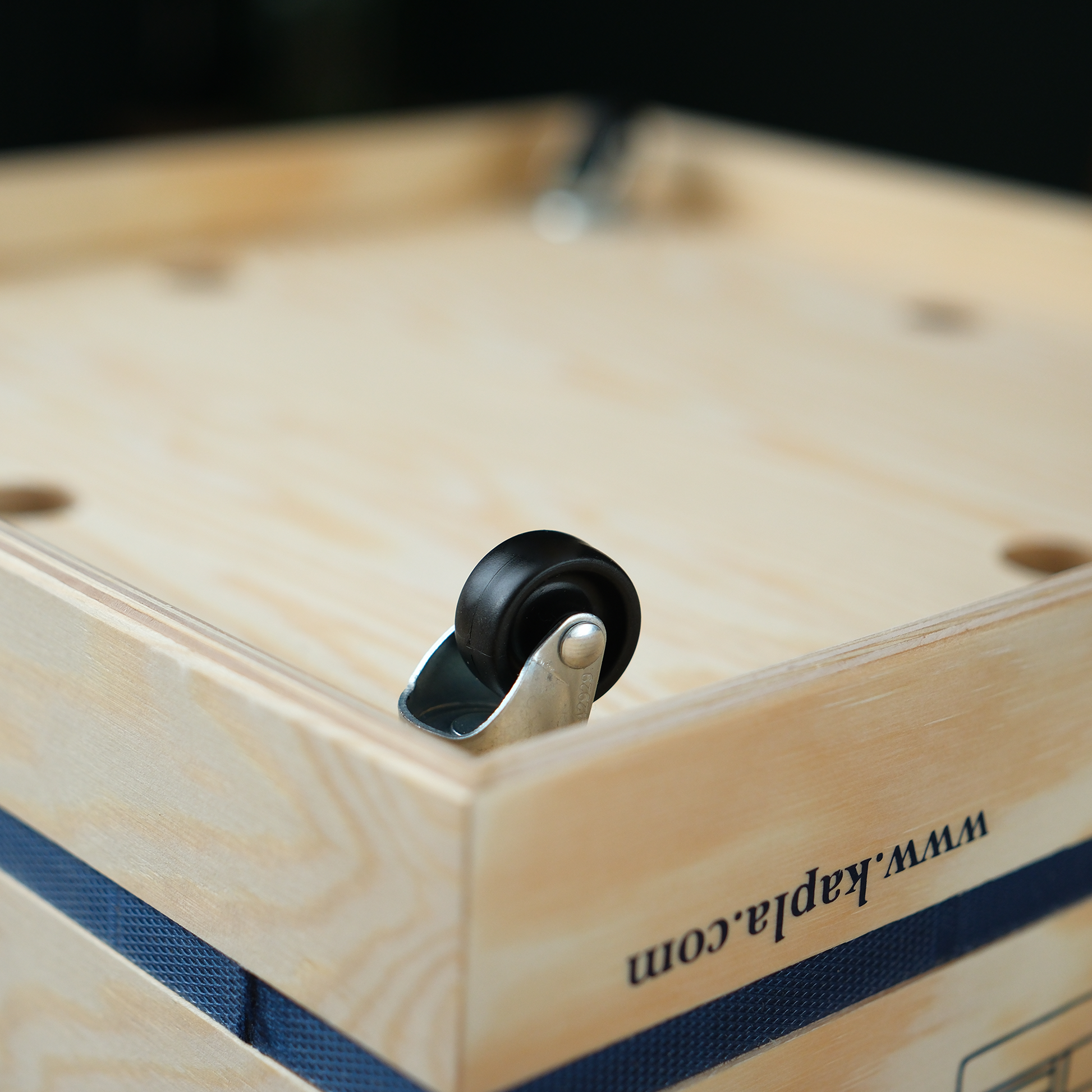 - Inside of a wooden box on wheels